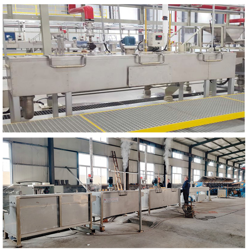 此设备是拉拔中、高碳盘条免酸洗磷化,在经剥壳除锈的盘条上,采用涂硼工艺达到钢丝拉拔表面增加润滑 层,起到与浸泡磷化、电解磷化相同的效果,主要适用干式拉拔。有效减少环境危害,适用范围直径5.5-12的 中、高碳盘条,可单线、双线设计。